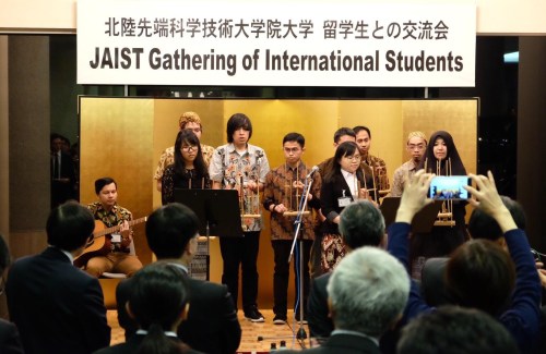 Angklung is a traditional musical instrument originated from West Java, Indonesia. It is popular throughout the world and it has been played for centuries. To be able to play this angklung, we just use one hand to hold the base of the instrument and use other hand to shake to produce a sound repeatedly. Typically each performer only responsible to just one pitch individual angklung. Because of this reason, playing angklung in orchestra will absolutely need excellent coordination and team work. Here we presented angklung performances in various event around Ishikawa and also the neighbour Toyama Prefecture.